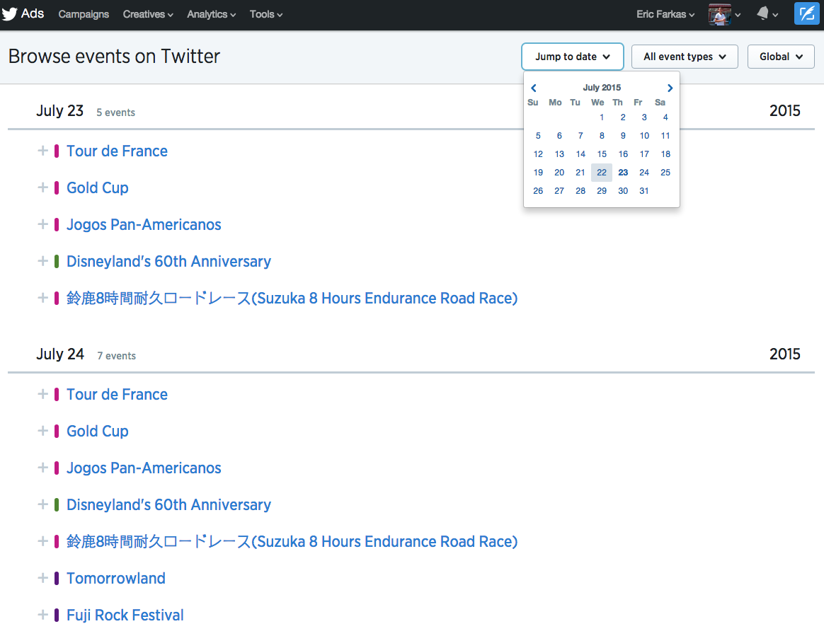 Twitter ha annunciato l'introduzione del "Targeting per Evento", una serie di nuove feature che permetteranno agli inserzionisti di raggiungere con i propri annunci un pubblico basato sugli eventi.